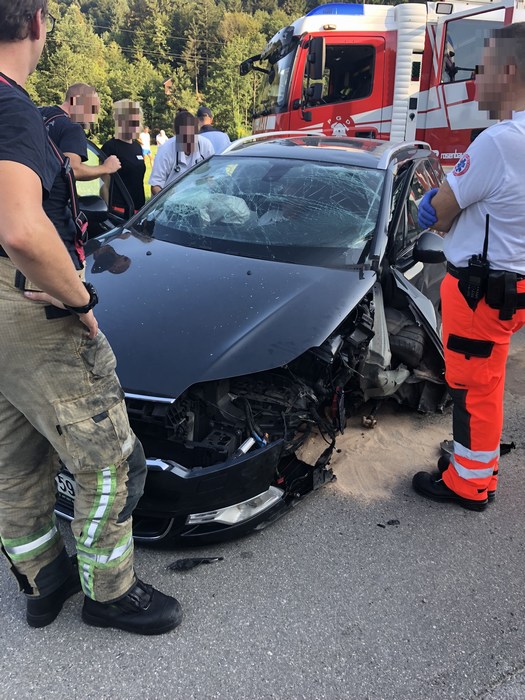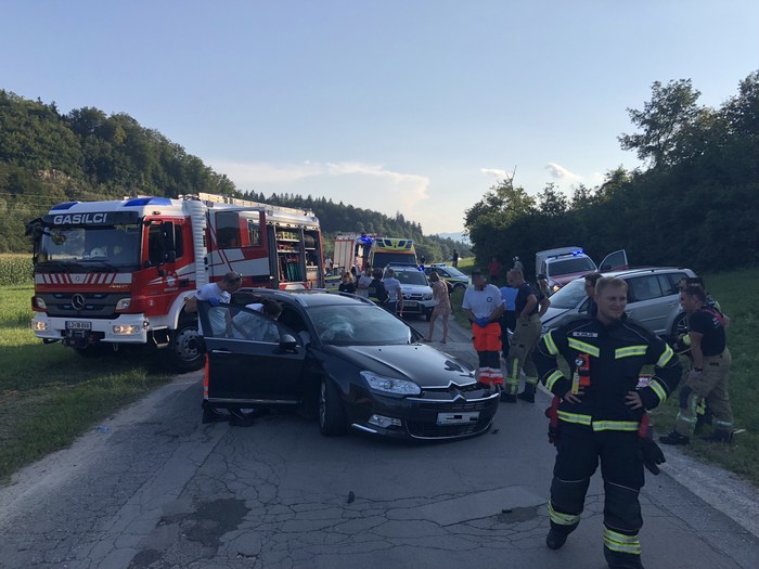 Na relaciji Grosuplje – Polica se je voznik z osebnim vozilom čelno zaletel v nasproti vozeče vozilo. Lažje poškodovane so bile tri osebe. Pomagali smo reševalcem pri oskrbi ponesrečenih, zavarovali kraj nesreče, odklopili akumulatorja, posuli cestišče, pomagali pri odstranjevanju razbitin in usmerjanju prometa. Z vitlom smo odstranili vozilo z cestišča. V UKC LJ sta bili prepeljani dve osebi.